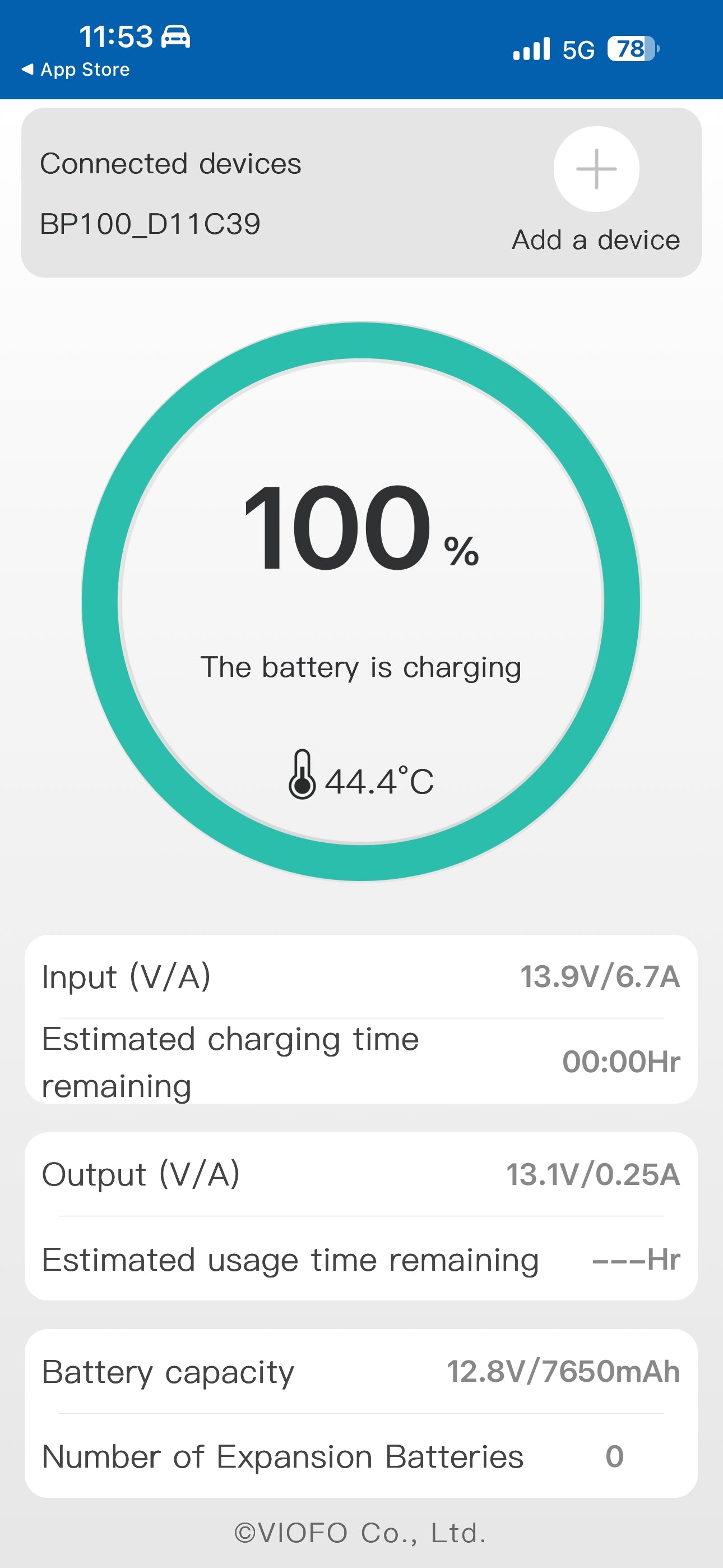 VIOFO BP100 7650mAh High Capacity Dash Cam Battery Pack for Parking Mode Protection, External Power Bank with Fast Charging, Built-in Bluetooth for Real-Time Battery Status