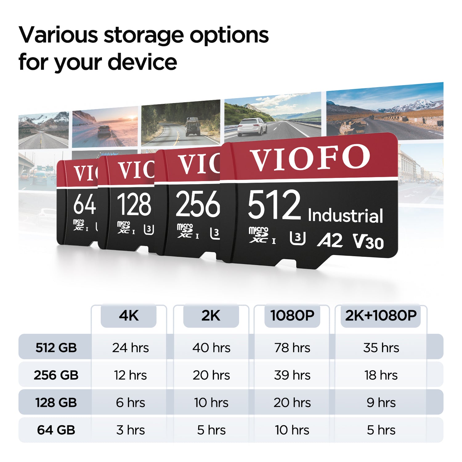 VIOFO 64GB Industrial Grade microSD Card U3 A2 V30 - High Speed Memory Card