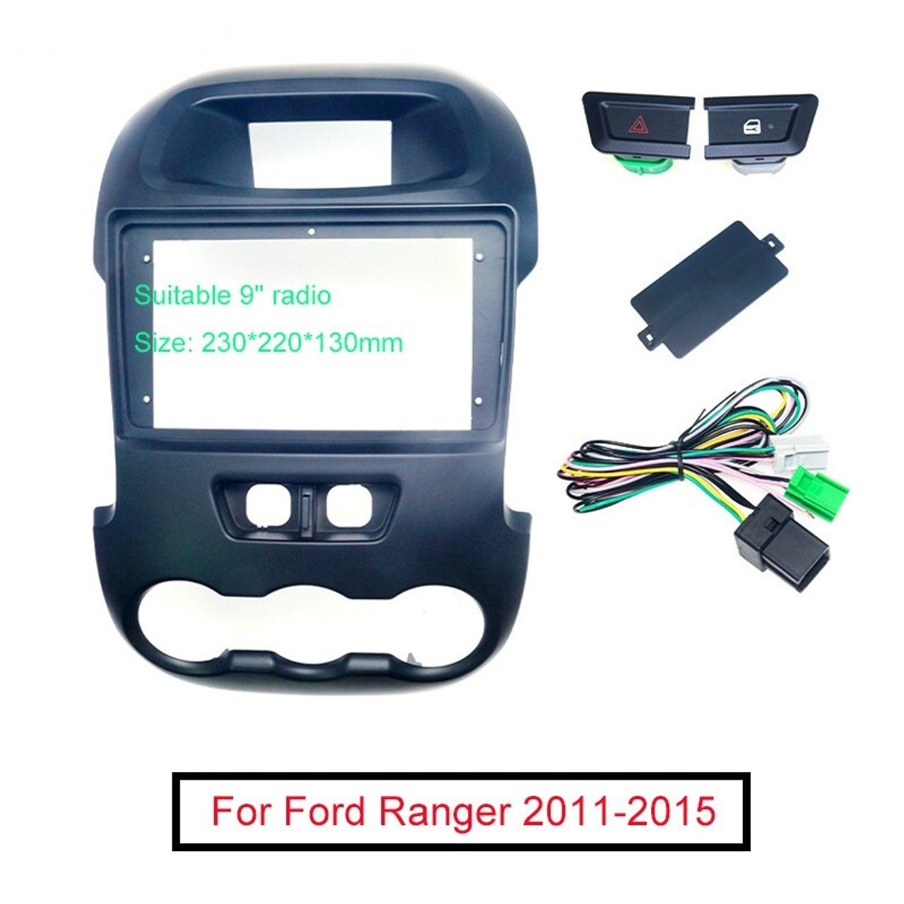 This fascia is specially designed for the modified installation of a 9" Big Screen Android headuit for Ford Ranger PX1 (2012-2015).